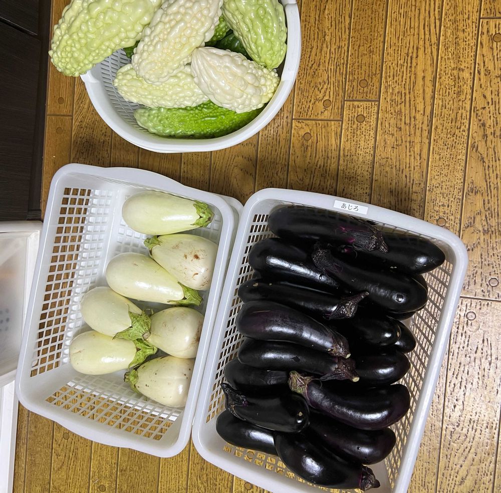綺麗に分別して収穫されて素晴らしいですナスも綺麗ですね 几帳面に作らないと こうはなりませんね 私反省しなくてはいけません😅