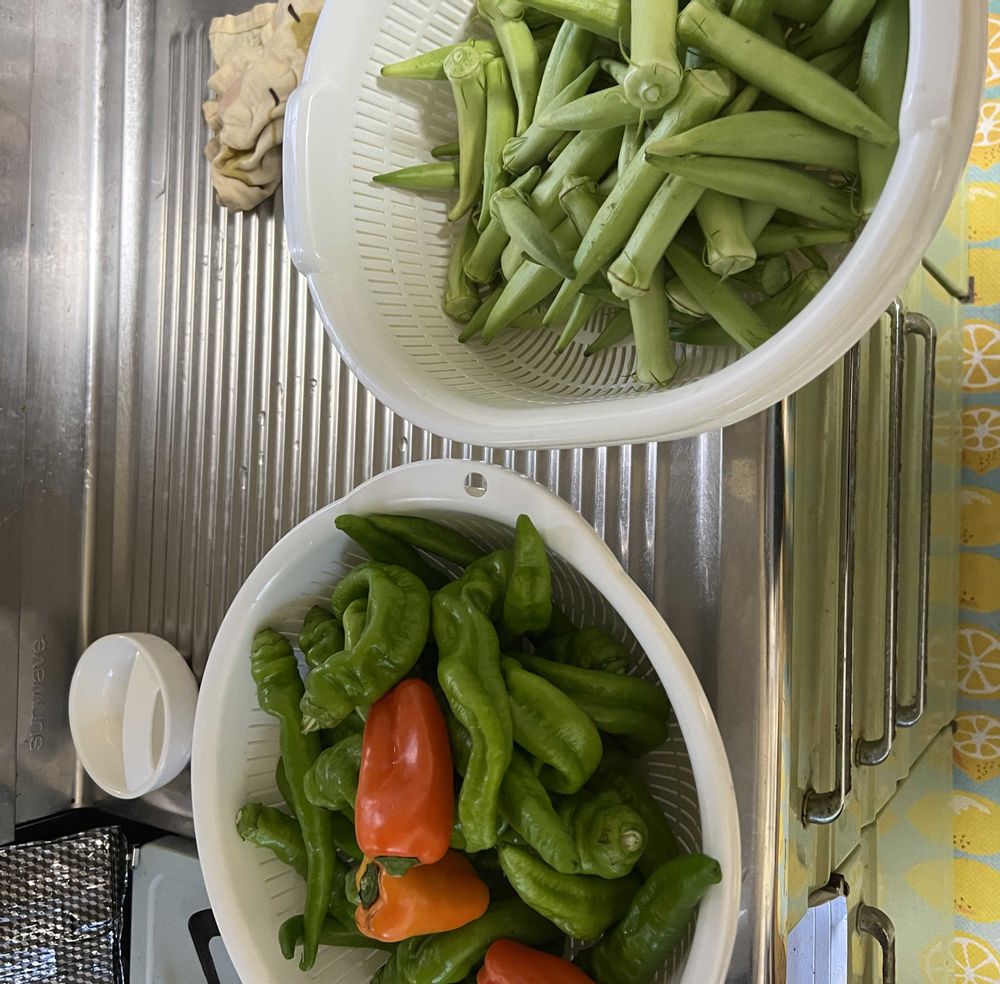 ナス🍆、白ナス、ゴーヤ、白ゴーヤ、オクラ、甘長トウガラシの福耳ジローなどこだわりを持って栽培しています。
