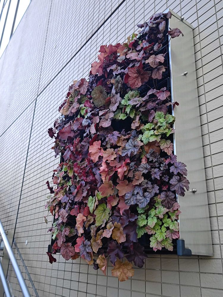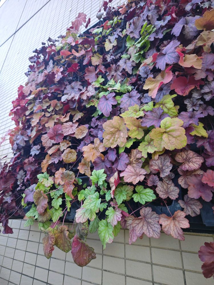 先日、梅田のステーションシティシネマのある11階から、13階の天空の農園に行く途中の壁面緑化?のヒューケラ。1枚め、2枚め登りながら。3枚め下りながら。