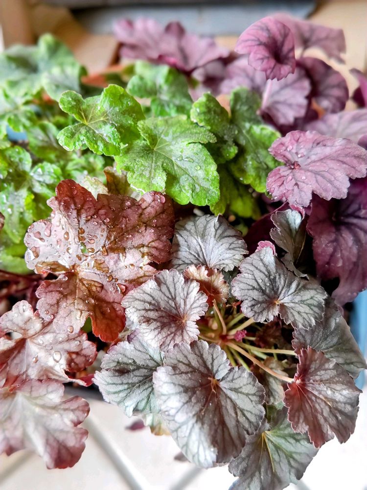 4枚め、我が家のヒューケラ寄せ植え。渋い🤭