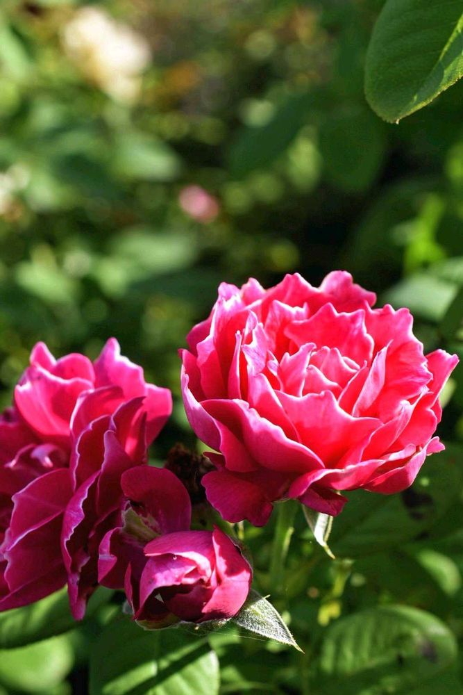 朝日を浴びてキラキラ✨️輝く赤いバラ🌹に白い縁取りが綺麗で素敵でした✨✨‼️😃