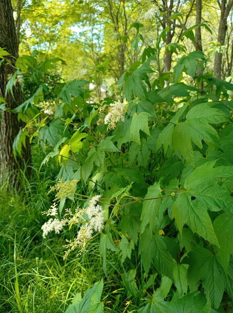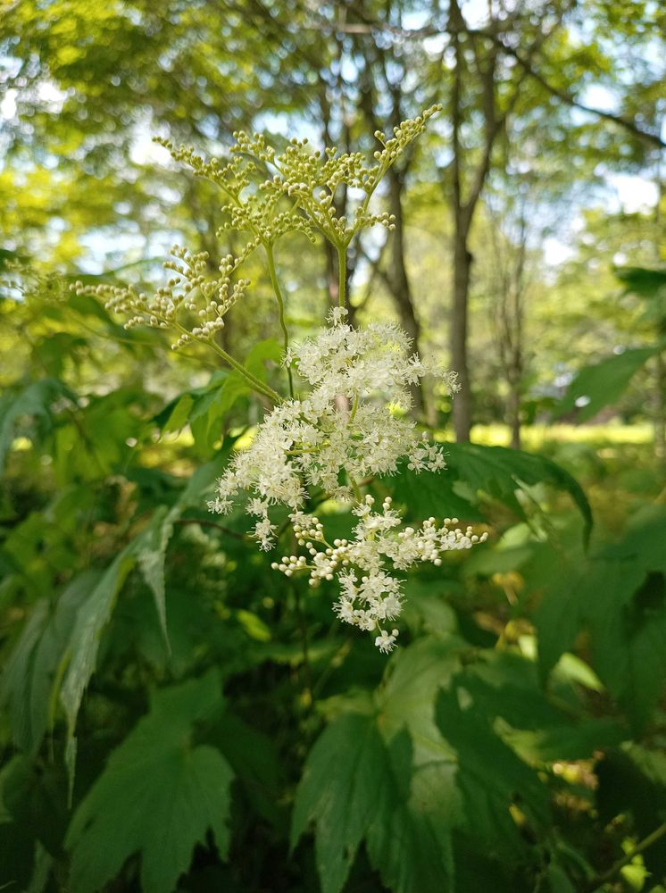 オニシモツケがモフモフの白いお花を咲かせてました。