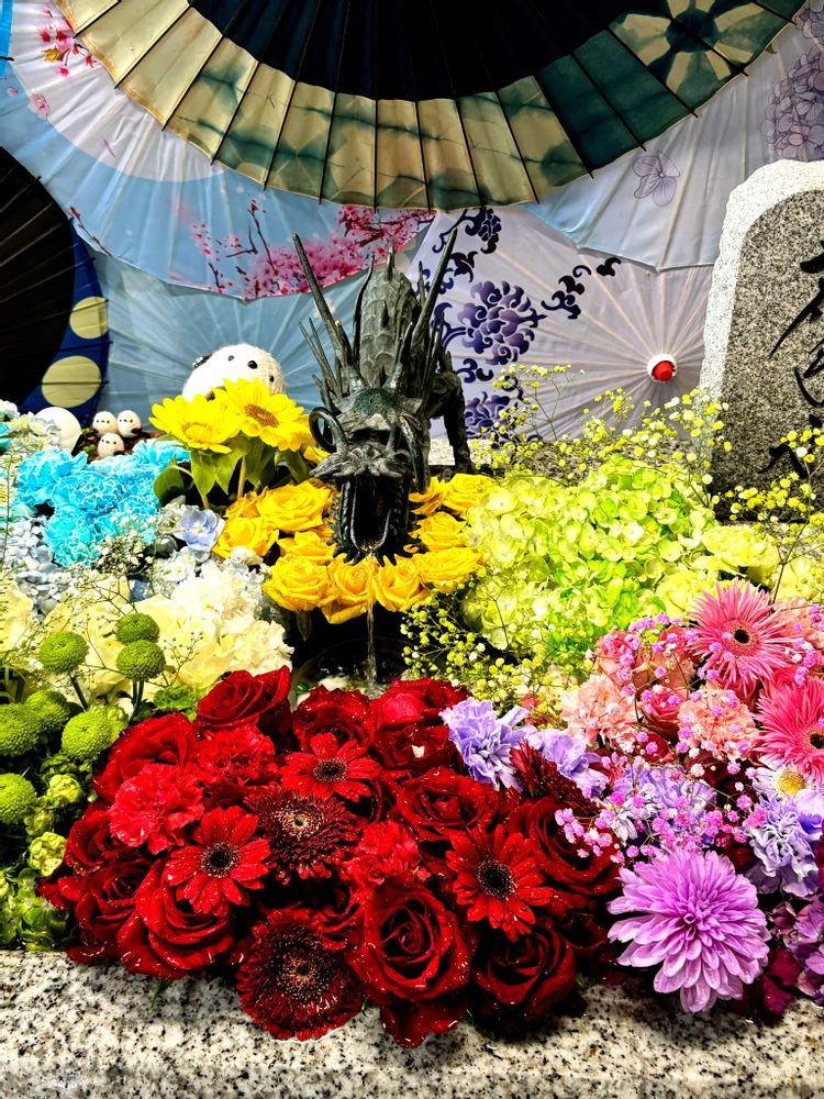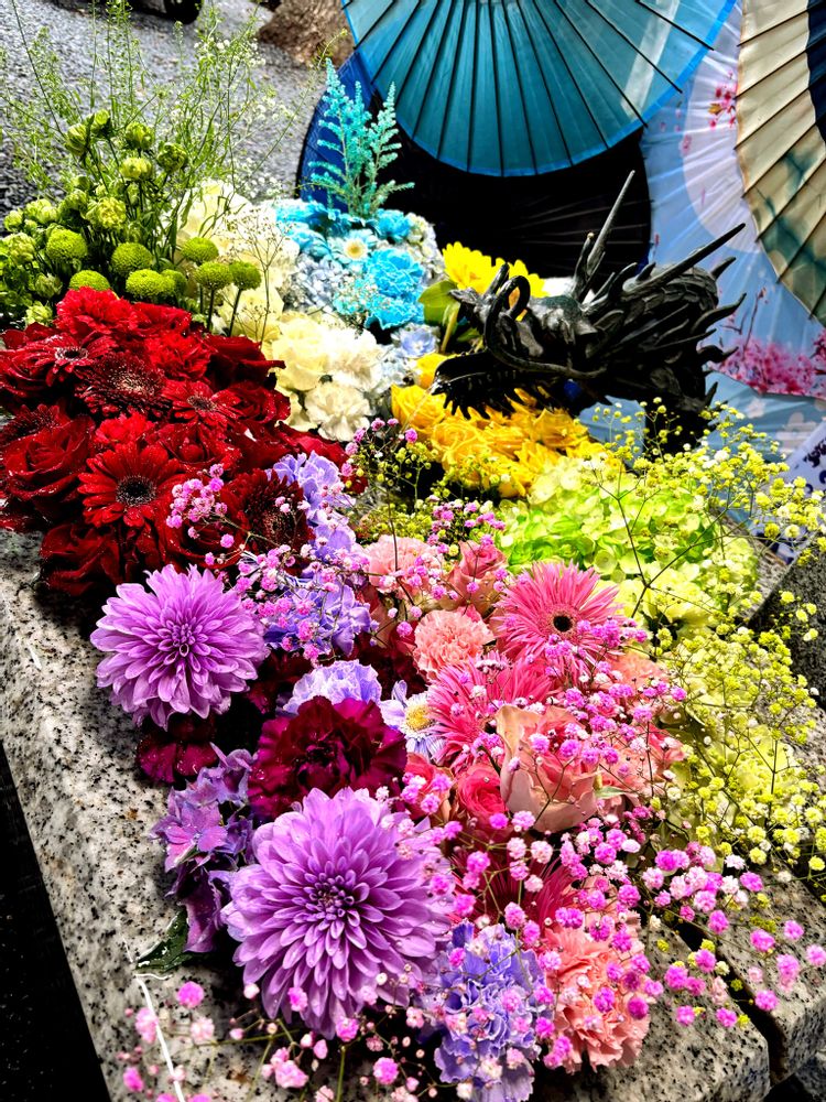 和傘も夏冬で変わるし工夫されてるの‼️今回はリクエストに応えてメンバーカラーでのお花になったみたいよ😃