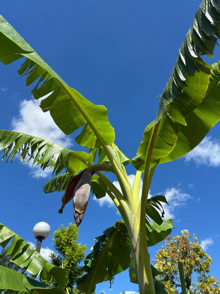 ボランティア花壇のある公園の「アイスクリームバナナ」の木に蕾を発見💡