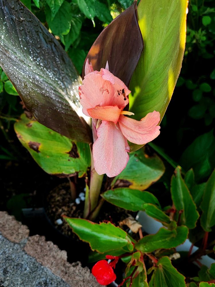 カンナブロンズピーチが初めて開花しました。今年ゲットしたばかりの子ですが、よく育ってくれて偉い!お花も可愛いくて素敵です。