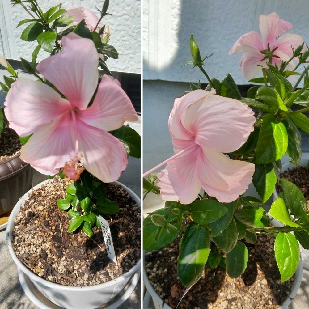 今日は、ハイビスカス3種咲いてくれました🥰特に、ピンクバタフライは背中合わせに2輪咲いていました💖