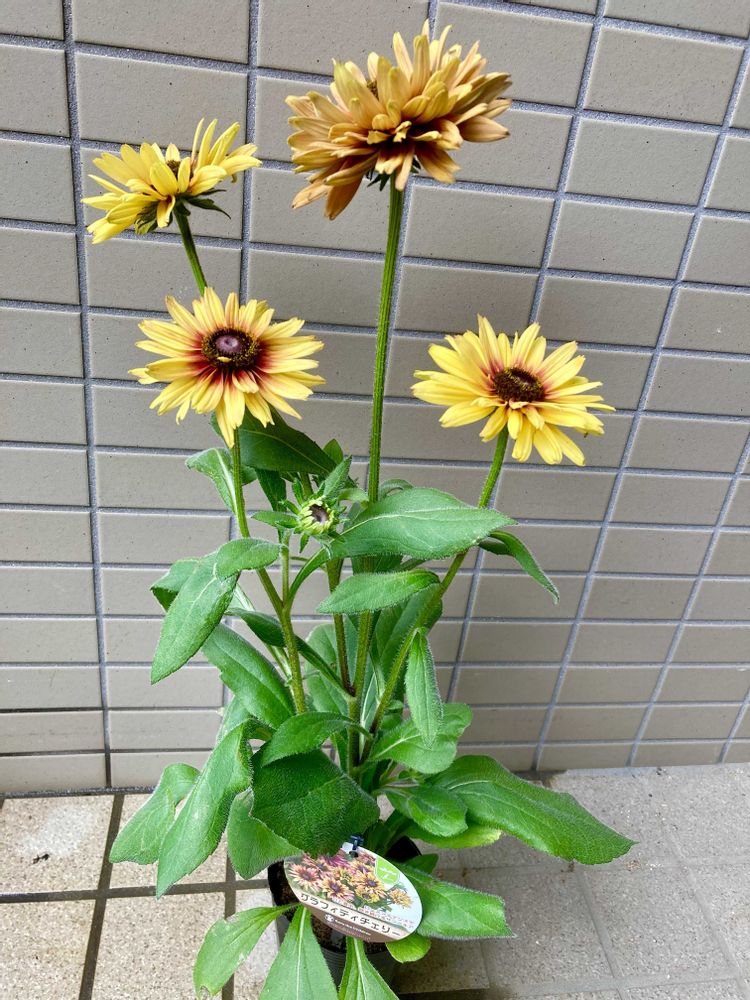 園芸店にいったらルドベキアと観賞用唐辛子の寄せ植えの見本鉢が可愛くて購入