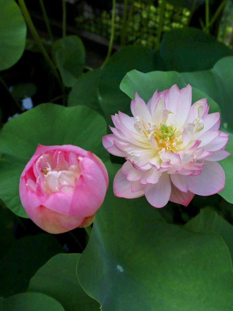 ハス「寿星桃」1日遅れのダブル咲きです♪しかも並んで咲くなんて!撮りやすい(笑) しかもしかも左の開花初日と右の開花2日目のどちらも可愛いなんてーーー! 最高です明日もダブル見れます!気がおかしくなりそう(笑)