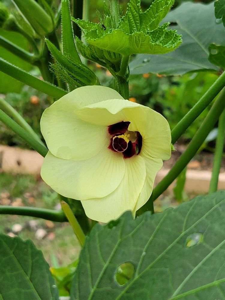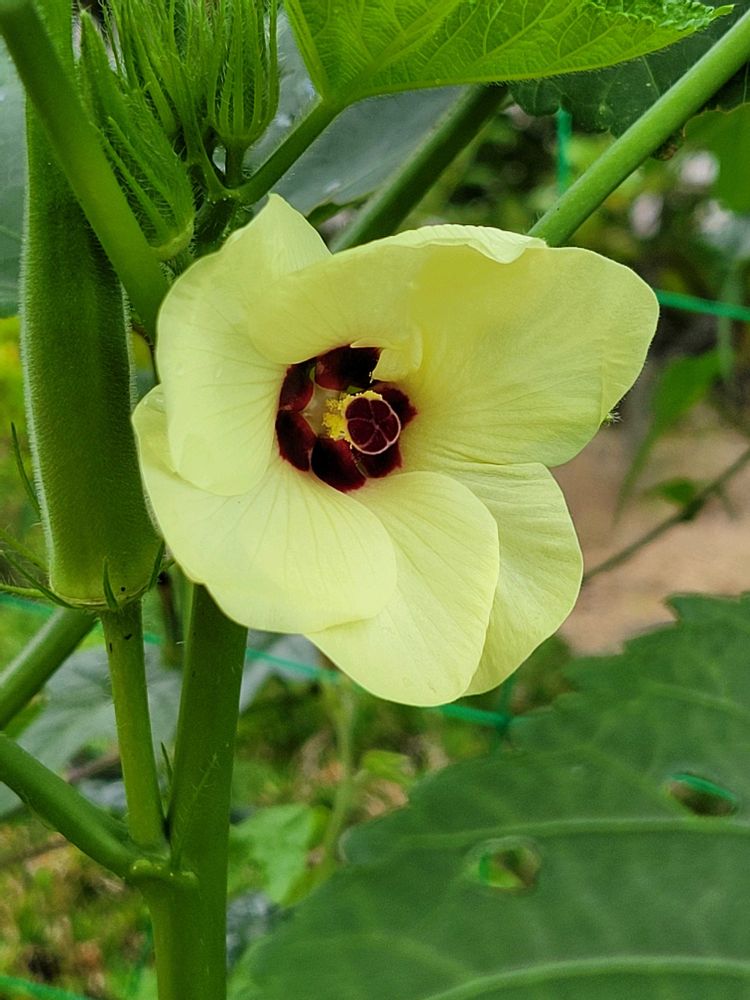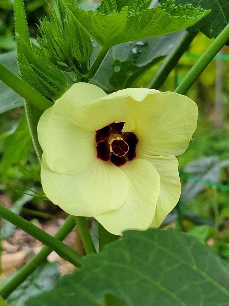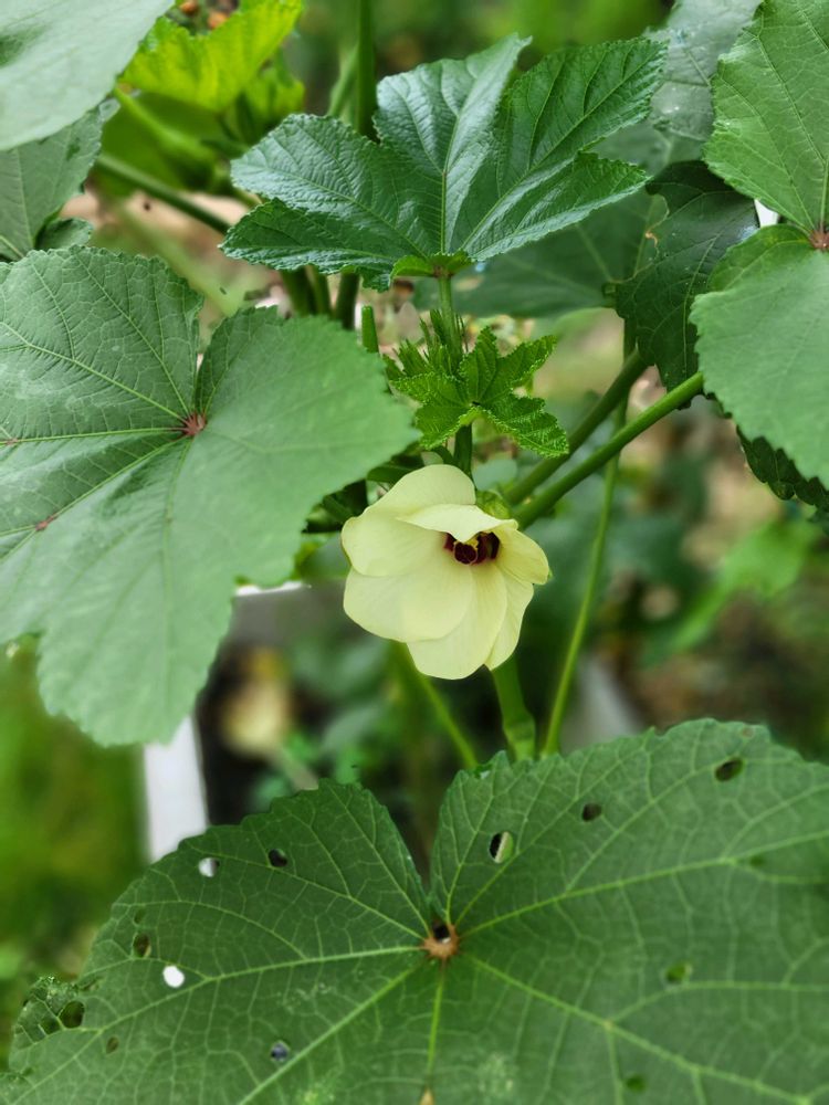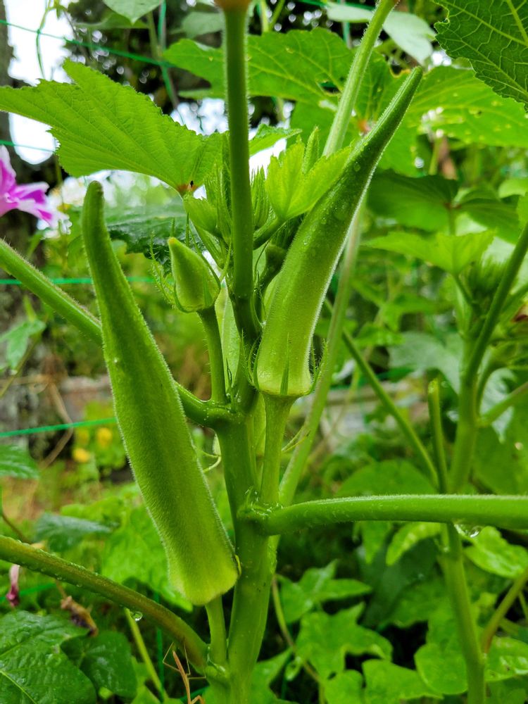 オクラさん、お蔭様で、すくすく成長し、可愛いお花に加えて立派な実も次々と出来ています😍