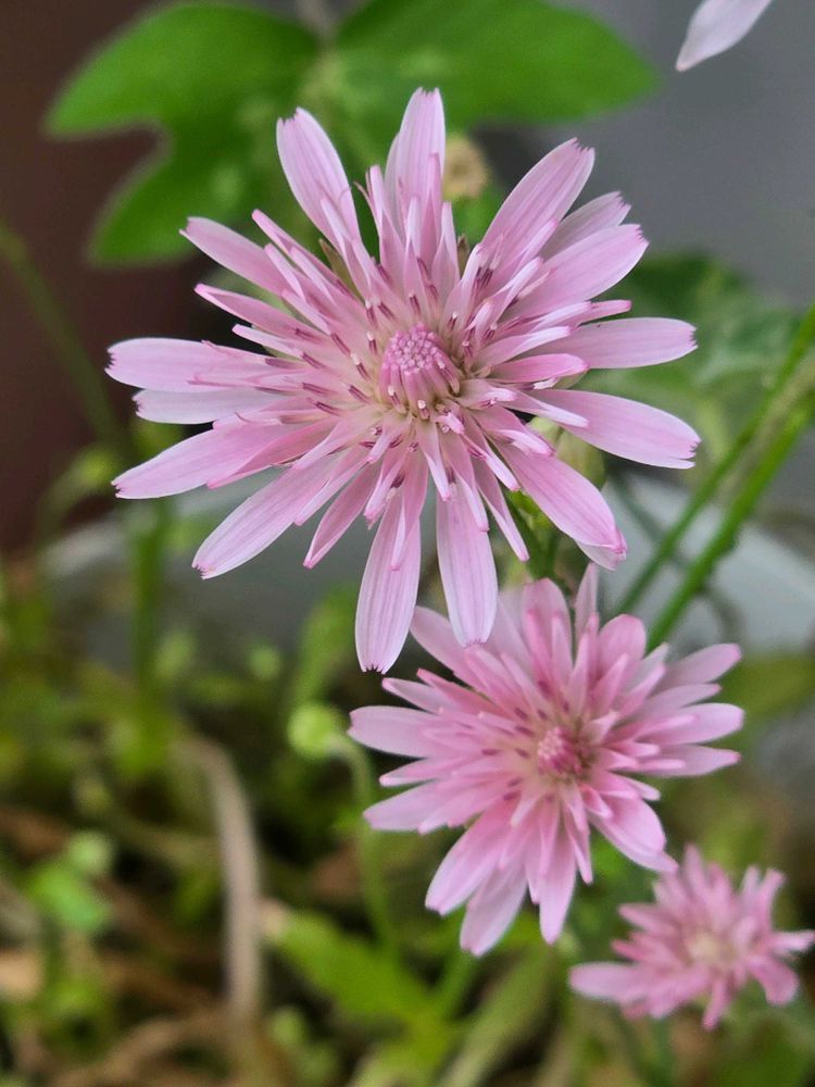 花友さんから頂いた種から、モモイロたんぽぽが開花しました🌸