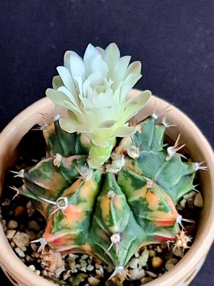斑の入り方が気に入っている緋牡丹錦に、白いお花が咲きました~❣️😍