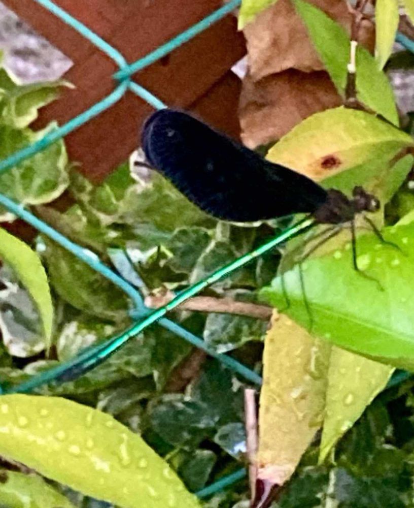 水撒きをしていると、あまり見かけないトンボが飛んできました。