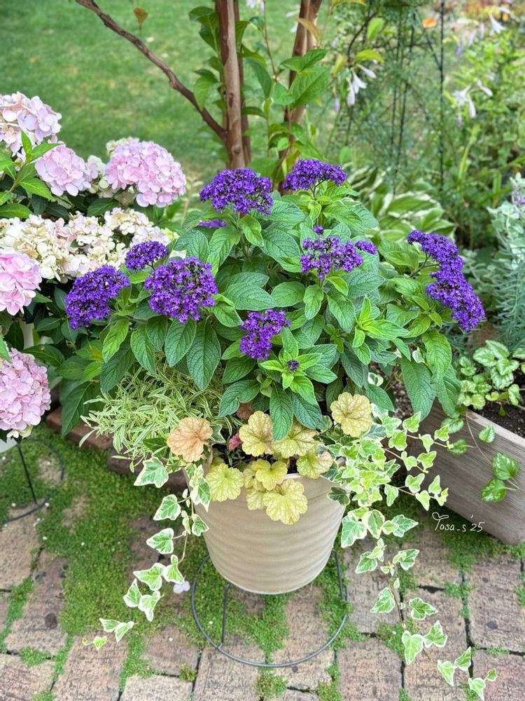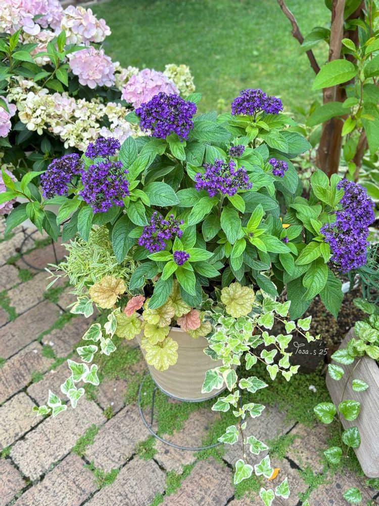 ヘリオトロープとヒューケラ バタークリーム(PWアンバサダー2021)はお似合い🥰(7/18撮影)