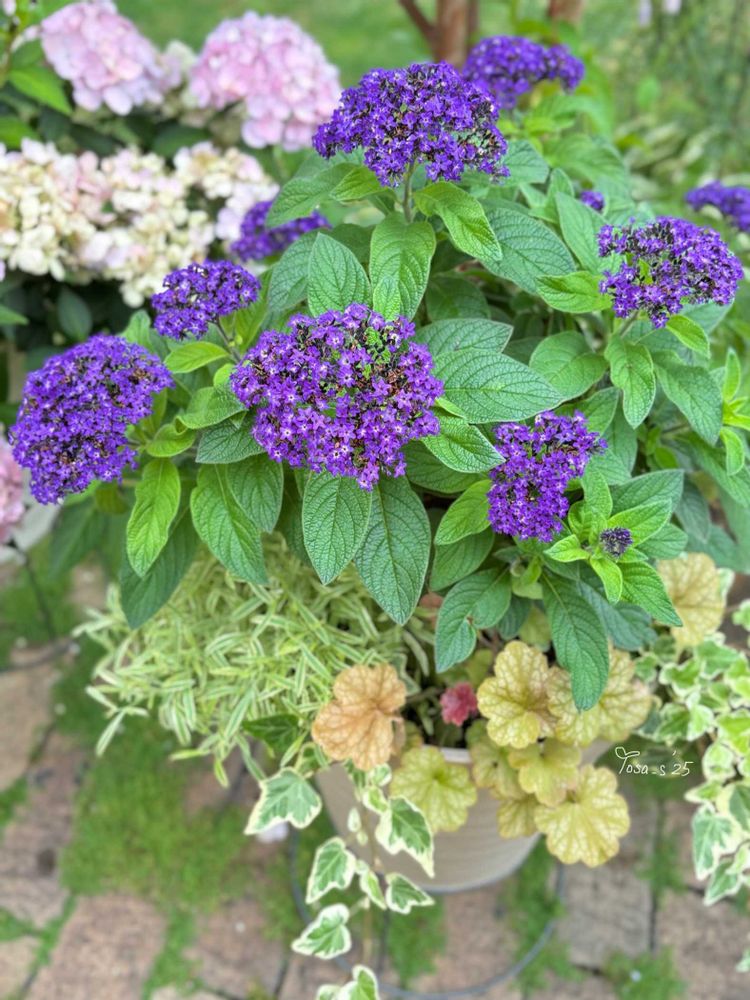 先日の雨に負けずヘリオトロープ ブライドブルー(PWアンバサダー2024)が綺麗に咲いています💜