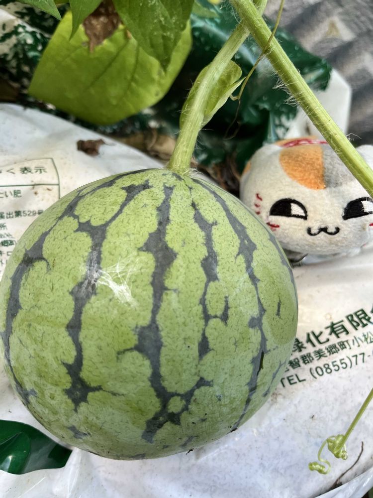 1 庭に植えたスイカ。ただいま手のひらサイズ😁