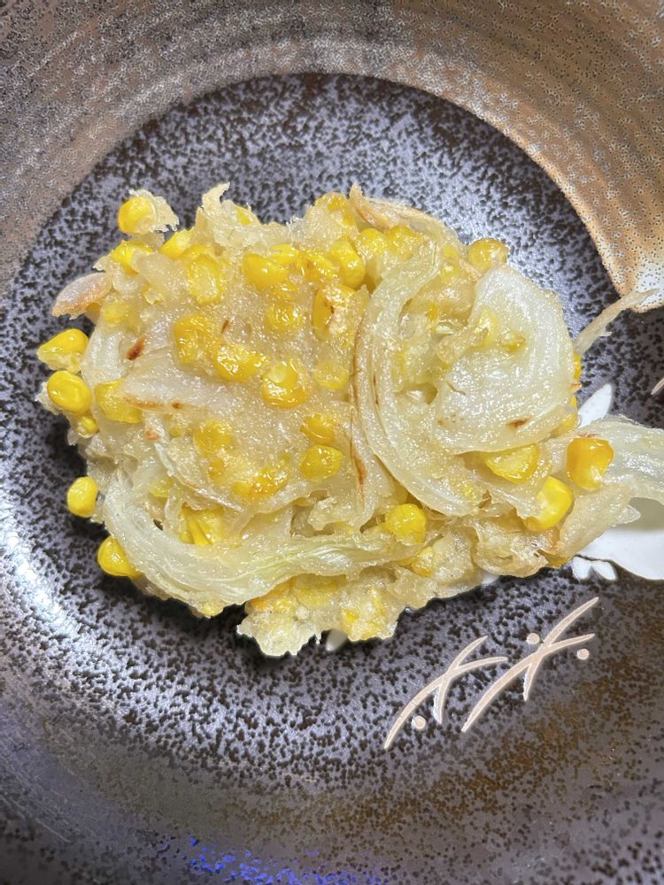失敗作でとうもろこしのかき揚げ作りました(「🌽・ω・)「🌽