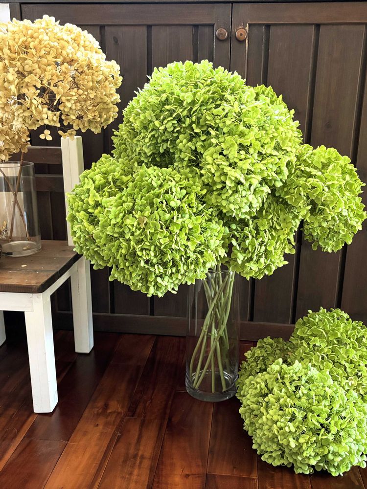 ③切ったばかりのアナベルと、一年前のアナベル。色がずいぶん違いますね。