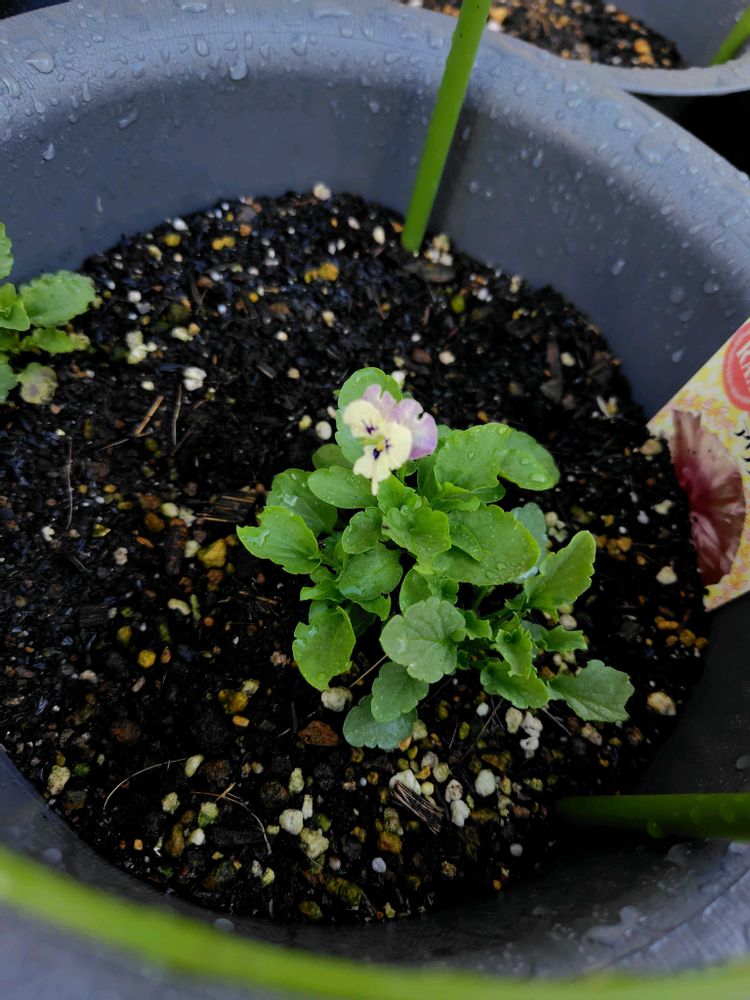 ビオラがこぼれ種から芽を出して、花が咲きました