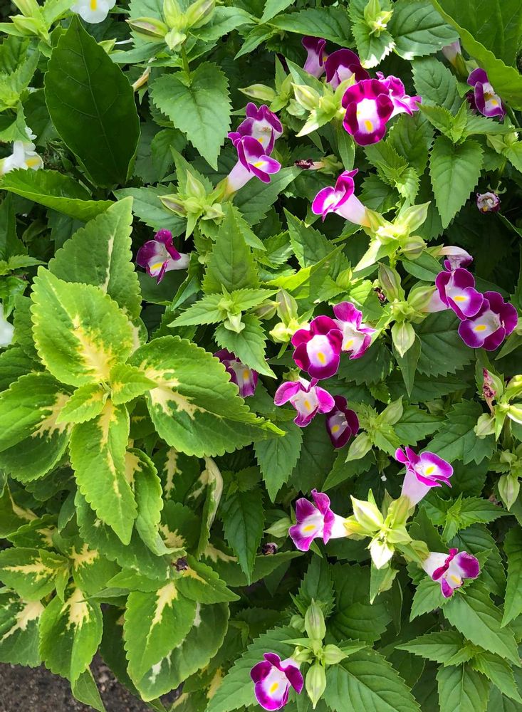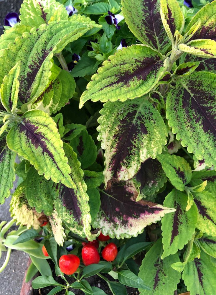 コリウスと斑入りの葉っぱが涼しげですね🌿🌿