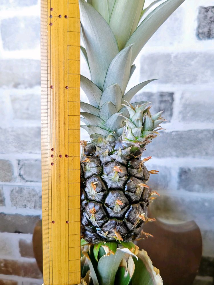 実の部分の長さ8cmほど、冠芽の長さ17cm位でしょうか。黒く艷やかなパイナップル🍍です。