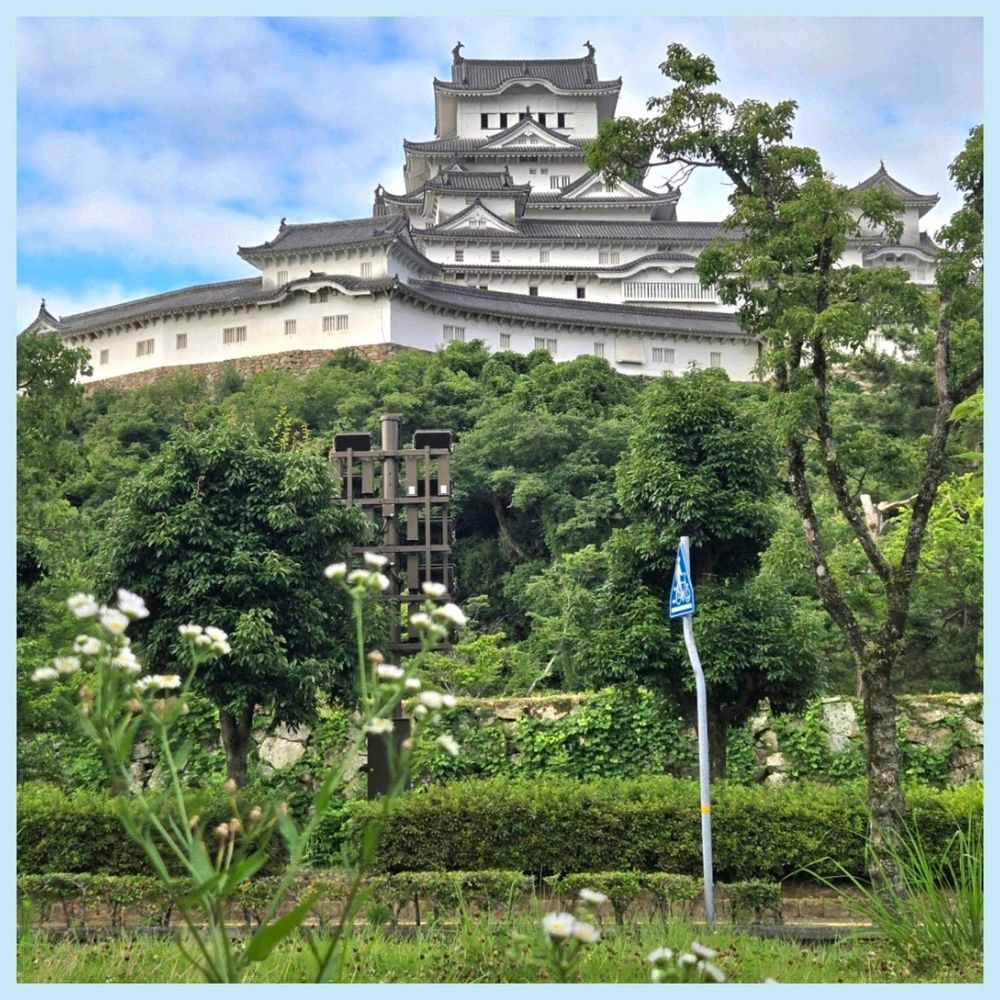 国宝姫路城の手前に咲くのは、ヒメジオンでしょうか。