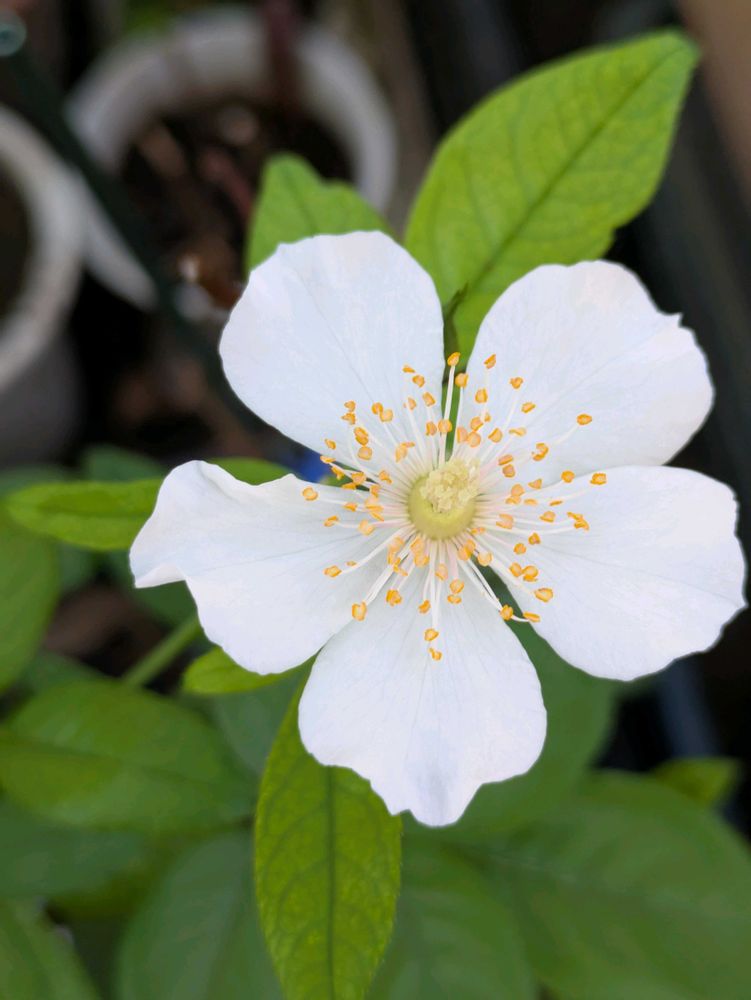 私の鉢植えを横にどかして、バラの棚を昨日も並べ出しました。