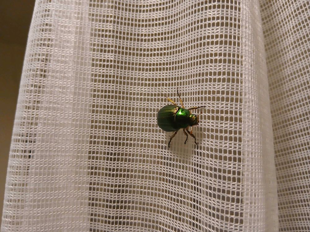 夜 暑いので窓をあけてたら 黄金虫が飛んできた! 逃がした🙆怪我してないと思う(2枚目)