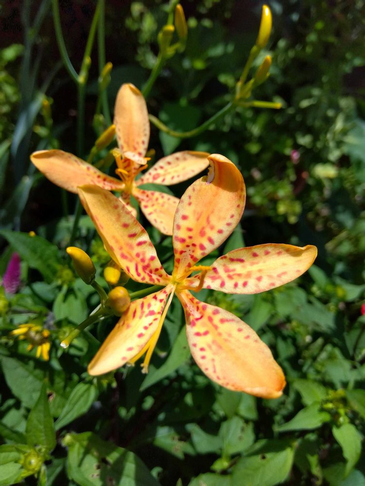 私の花壇にも今年は沢山のヒオウギが咲きました🎶✌️植えたのは一株。種が落ちて増えてます🥰