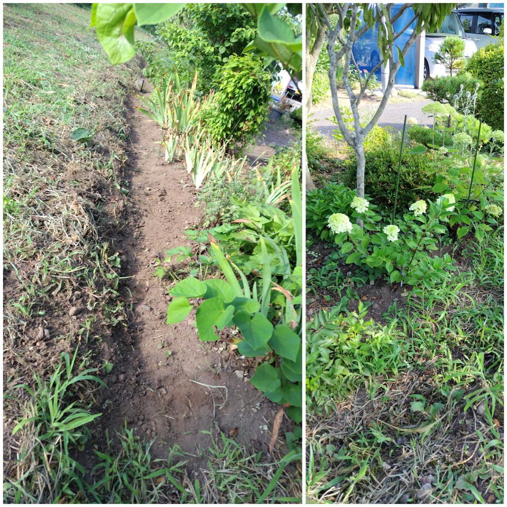 早朝に和庭と藪地の境界の草取りを少しずつやり始めました💦
