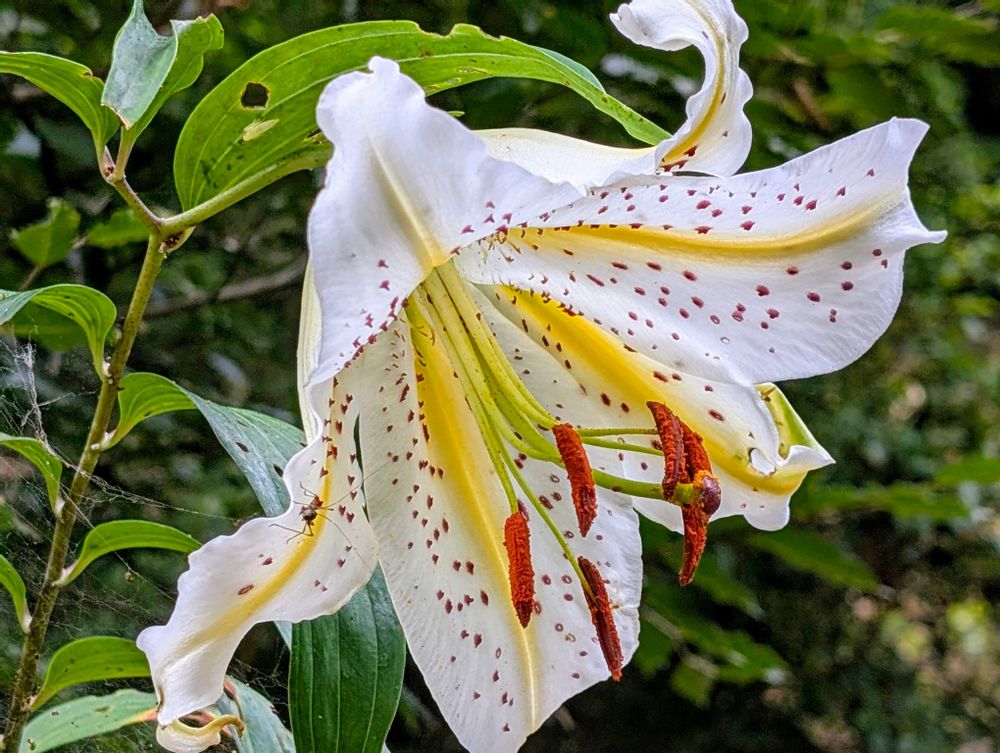 こんにちは😉先日 草刈りした場所にツルに絡まれたヤマユリを残したら綺麗に咲きました😁以前はいっぱい咲いて秋には球根を収穫して冬の保存食にしていました、ユリ根は高級品として扱われた時代でした🤗