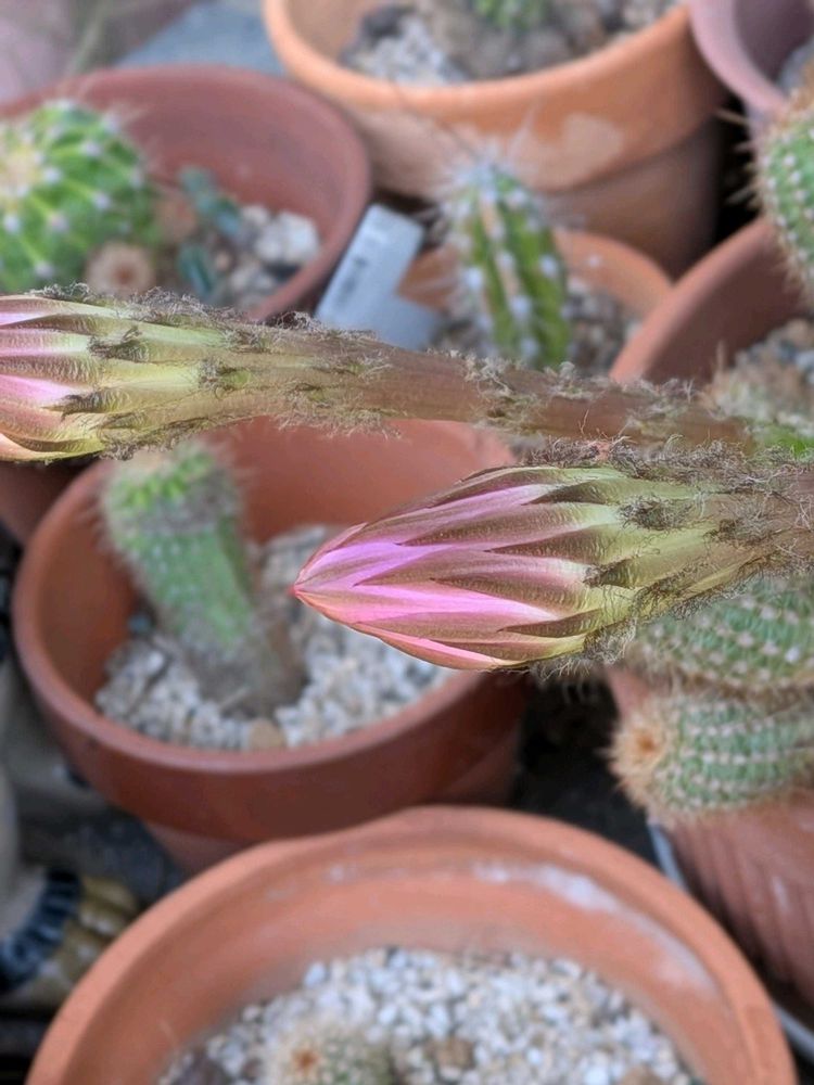昨日、揃ってふっくらし始めた🌸短毛丸(ラッパサボテン)