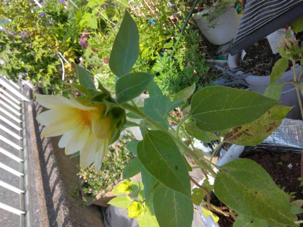 昨夕気付いた向日葵ホワイトムーン かな!? 5粒撒いて一輪目
