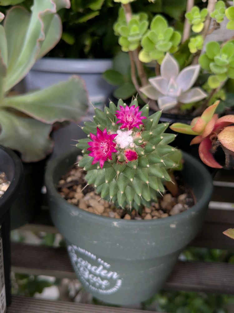 二階テラスではサボテンに可愛い🩷お花が咲いている〜✌️🥰🎶