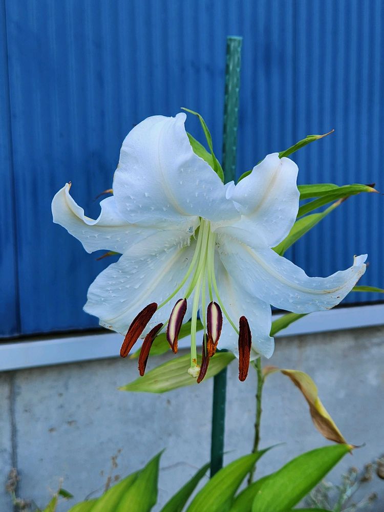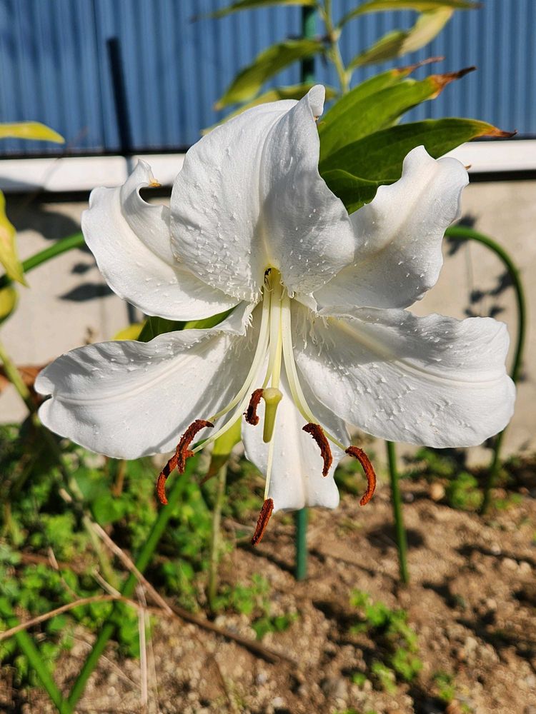 葉っぱも蕾も焼けて今年は無理だと思っていたカサブランカが咲きました😁