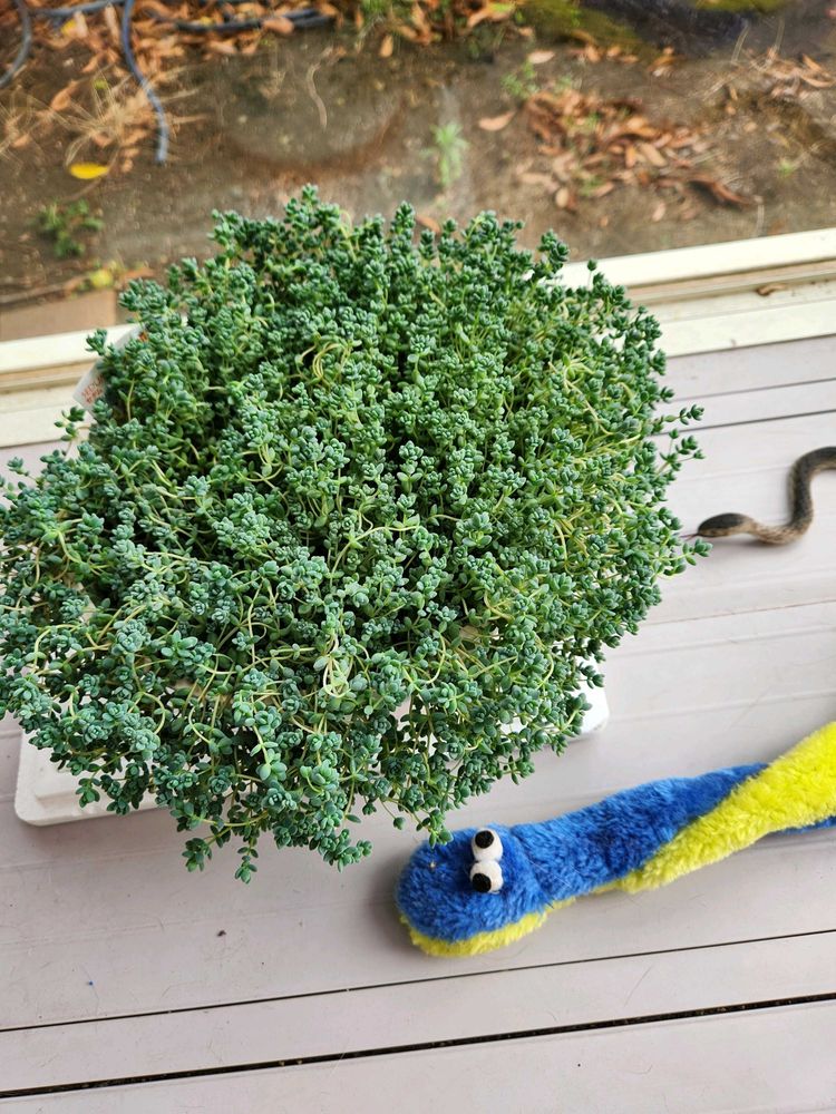 🌱🌱🌱セダムの隣に、ニョロリが・・本物みたいだね😅
