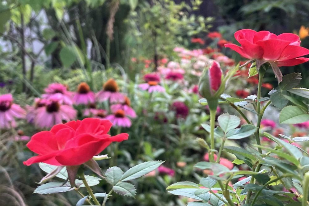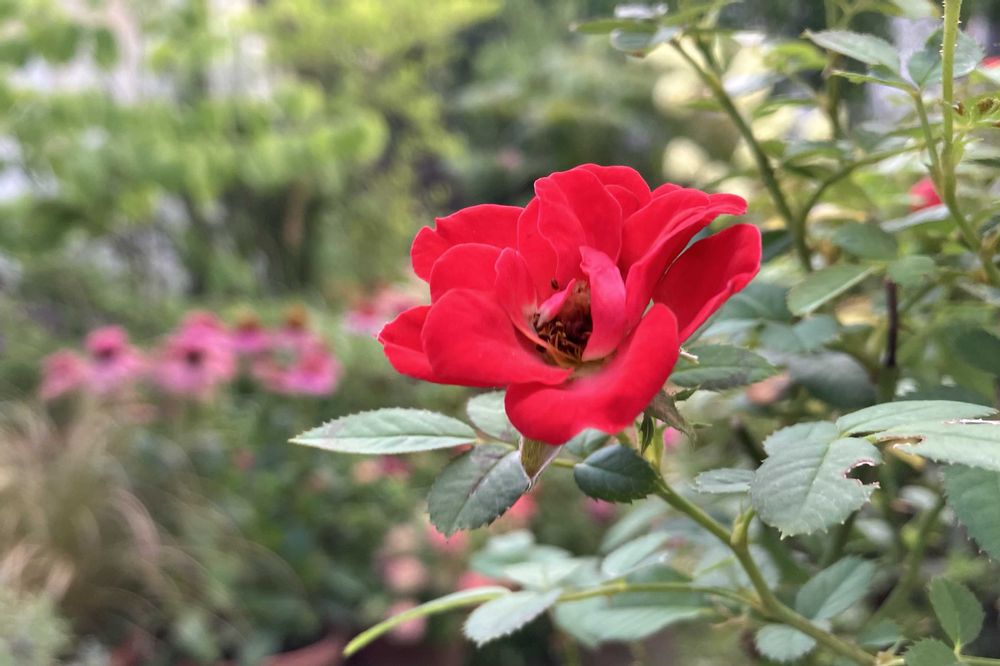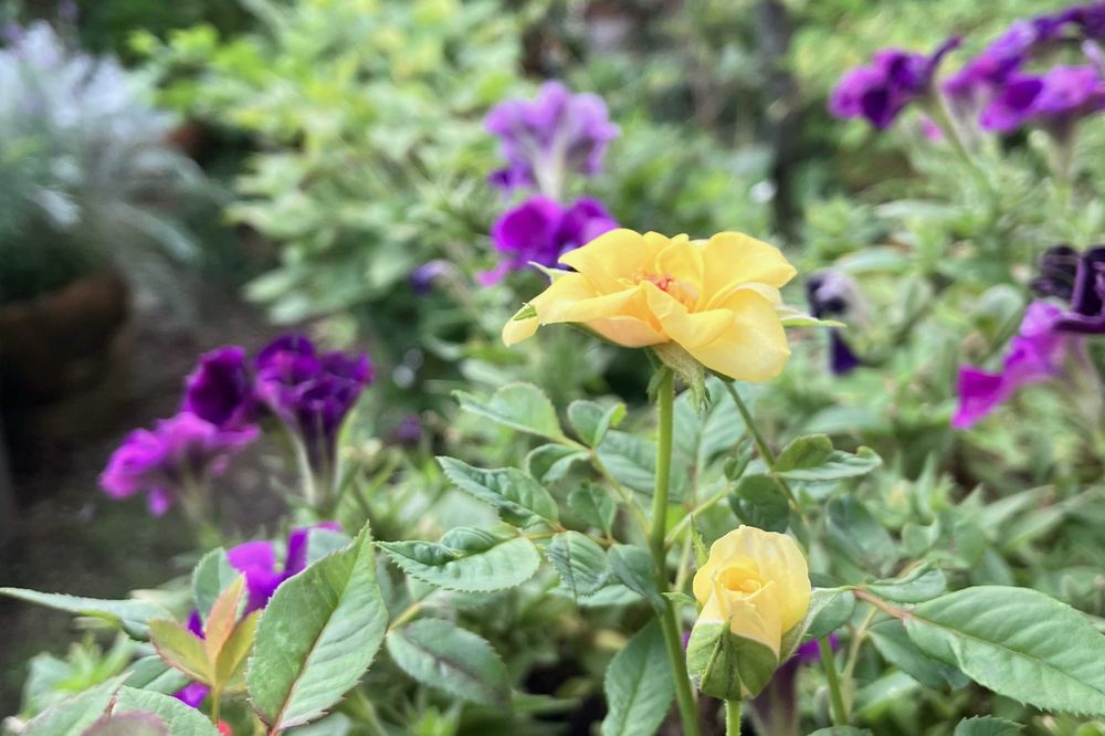ミニバラがちょこちょこ咲いている