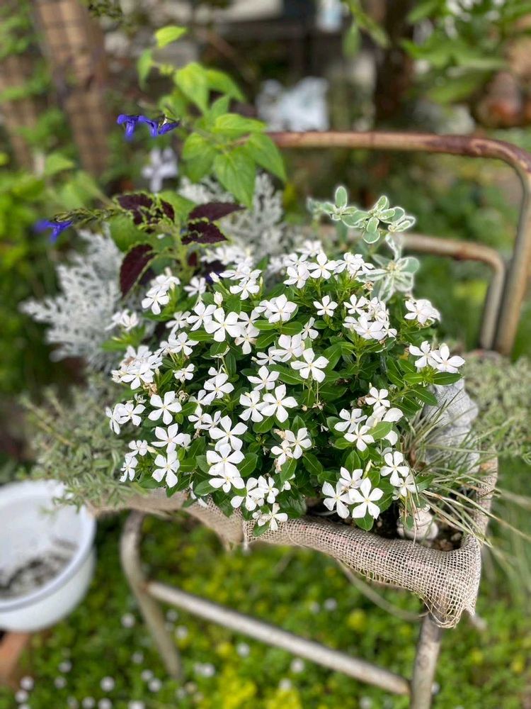 ④今季もぶっ壊し椅子の寄せ植えはニチニチソウのフェアリースター⭐️