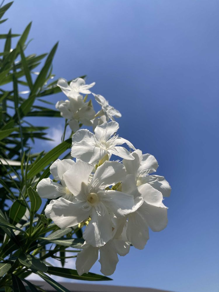 真っ青なお空に清々しい白い夾竹桃︎🤍︎🤍︎🤍