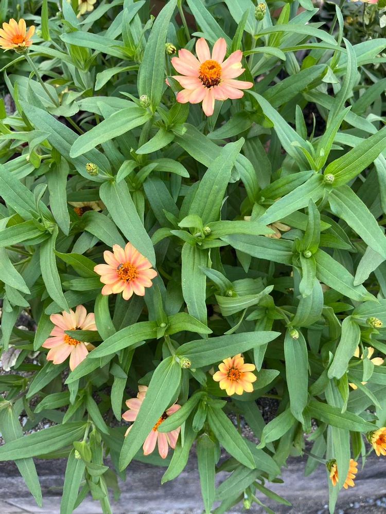 ピンクかなオレンジかなとても素敵な色のジニアですね✨🧡🩷💛🩷💛