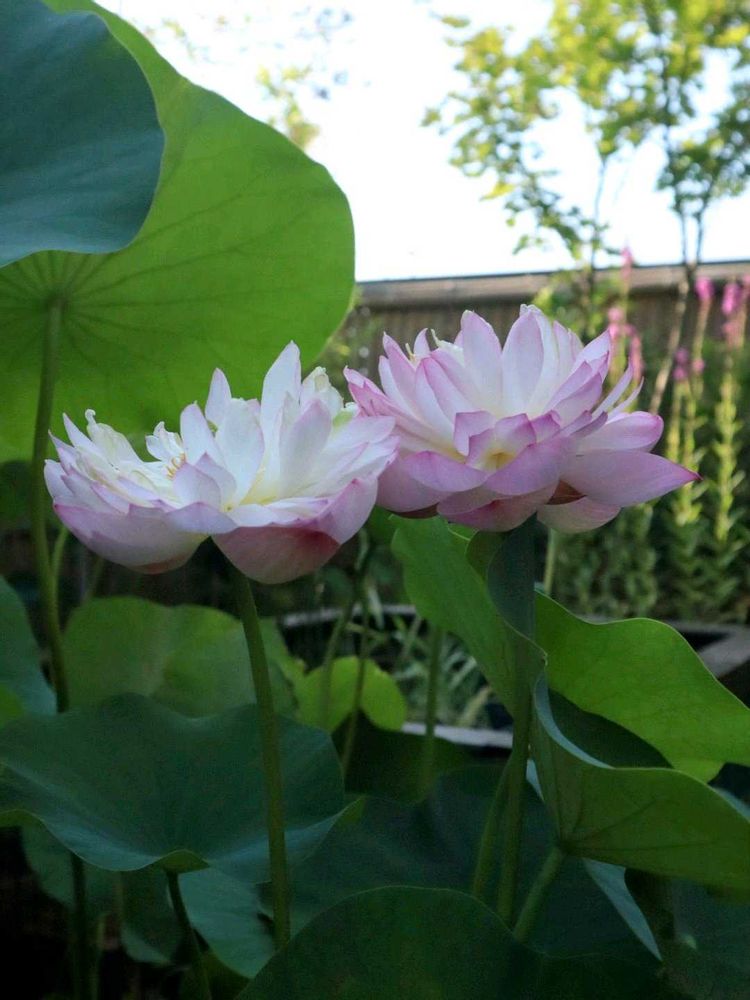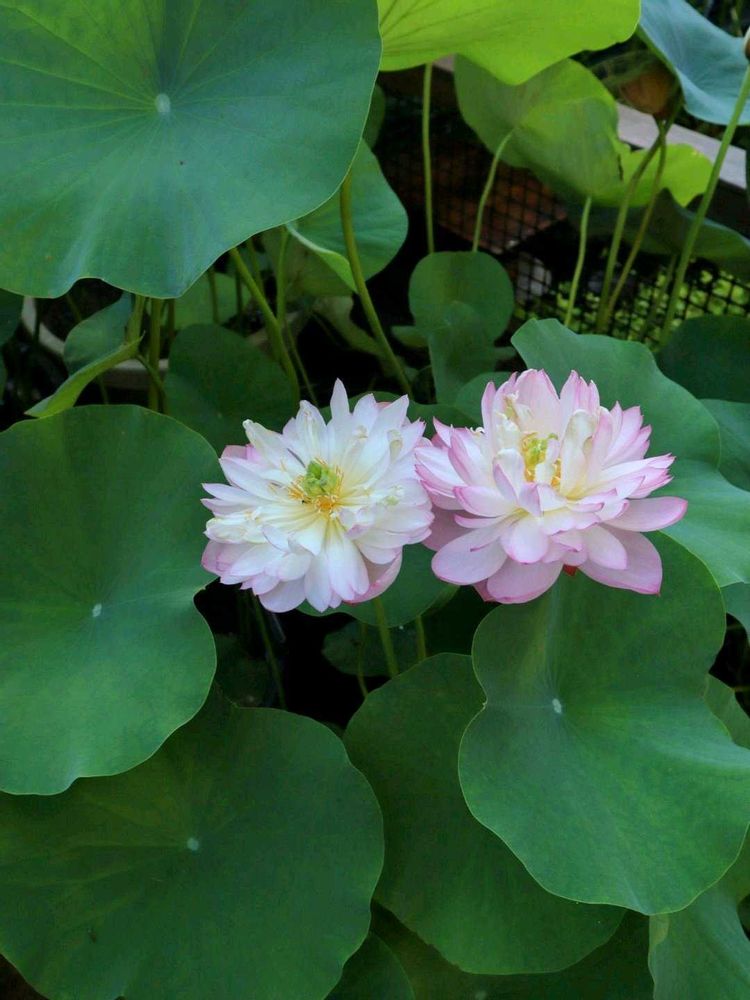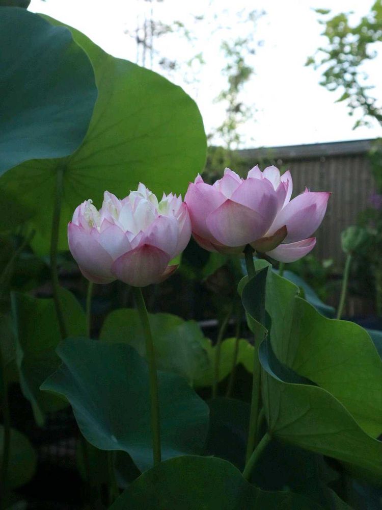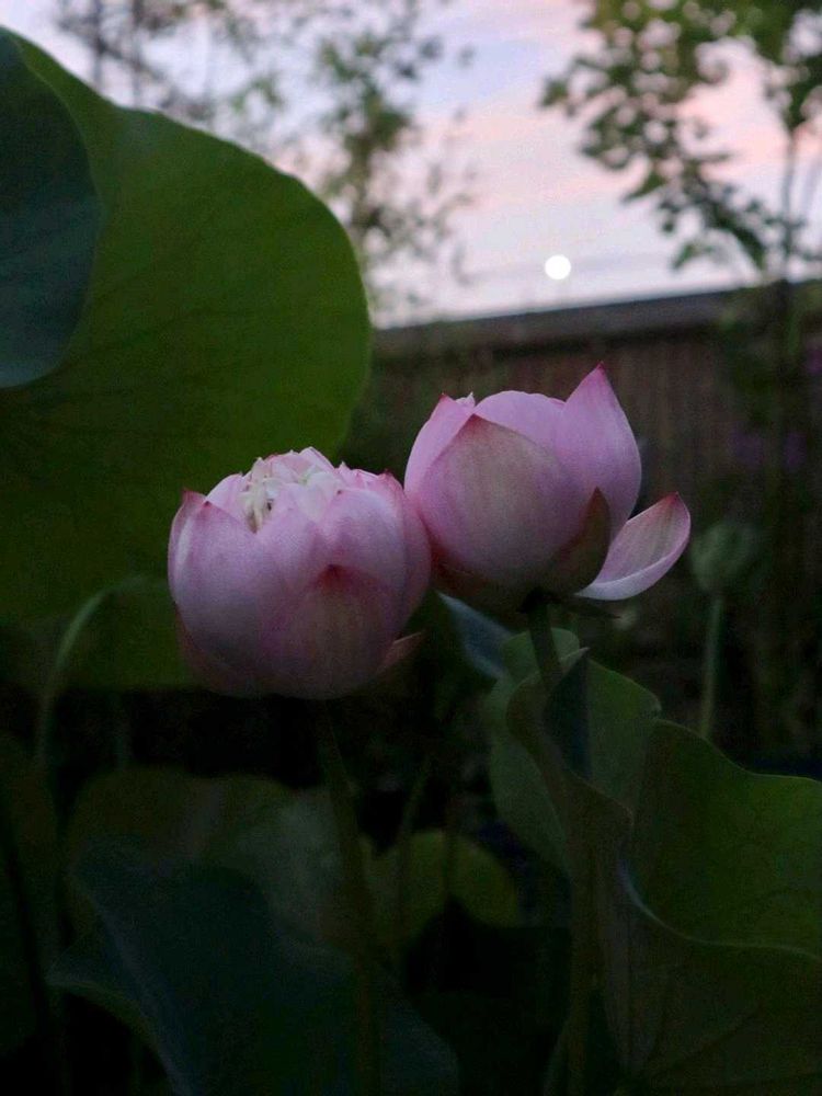 ハス「寿星桃」AM4時…可愛い姉妹のようですね〜仲良く引っ付いてます♪向かって左が開花3日目のお姉様で右が開花2日目の妹様って感じか(笑) 今朝は早起き正解です!出勤まで美しい姿をゆっくりと眺めてました〜♪