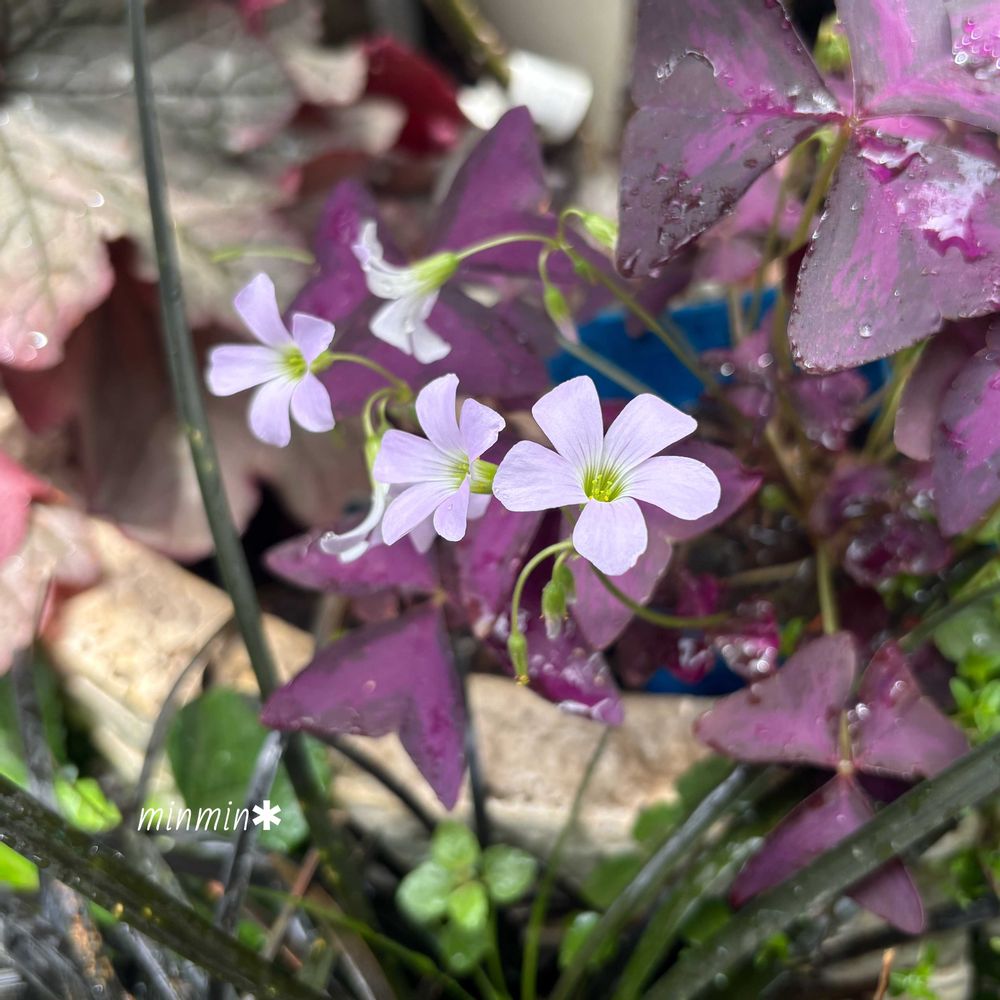 紫の三角形の葉にライラックピンクの可愛いお花です💓
