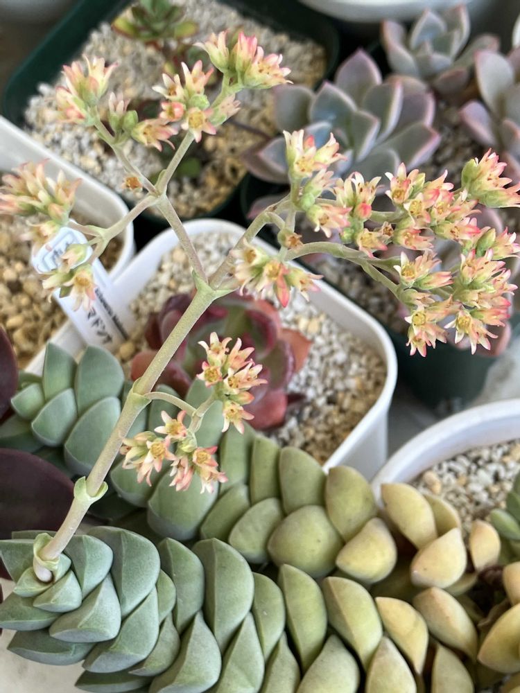 1枚目 暴れ紀ノ川にお花が咲きました。小さくてやっぱりクラッスラのお花ですね。色合いがかわいい♥️