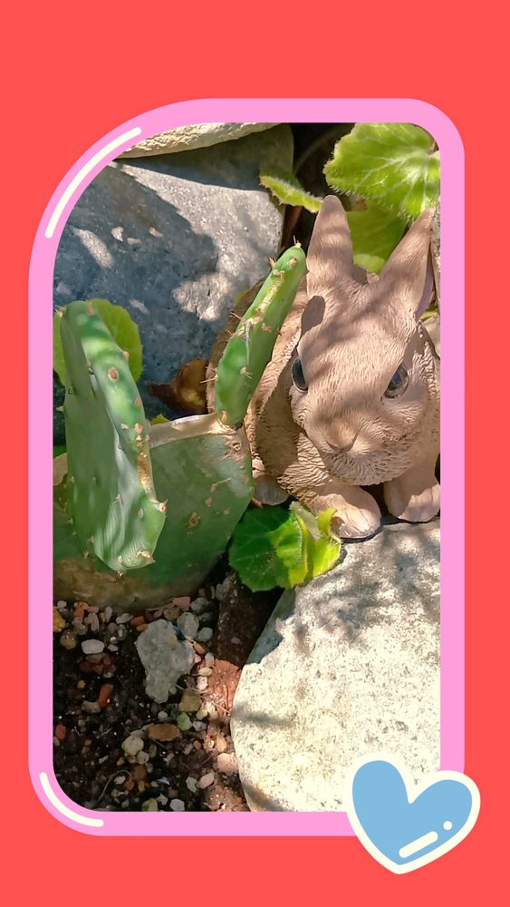 ①今日のお花✻ウチワサボテン🌵ウチワ型の株を頂きロックガーデン風に放ってました😙🤭元気みたいですネ〰✨