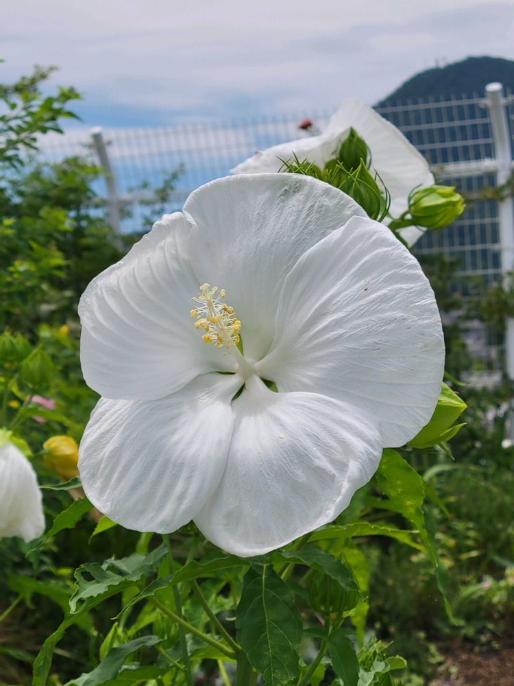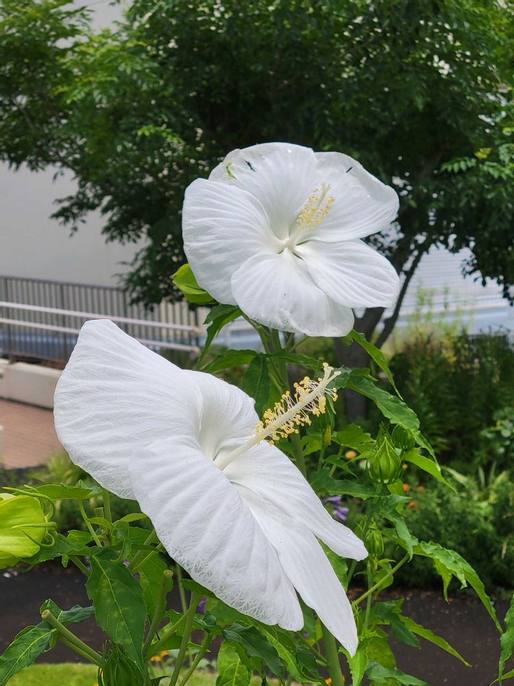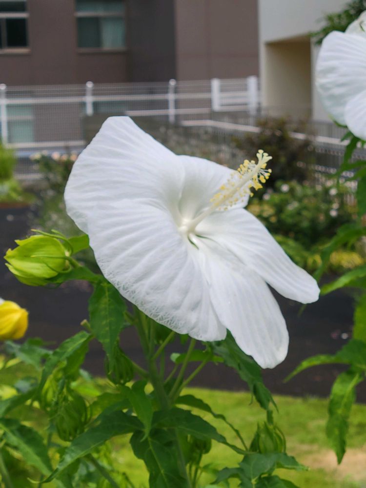 大人の顔ほどもある巨大なお花のアメリカフヨウさんが颯爽と咲いていました。