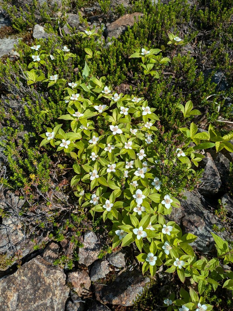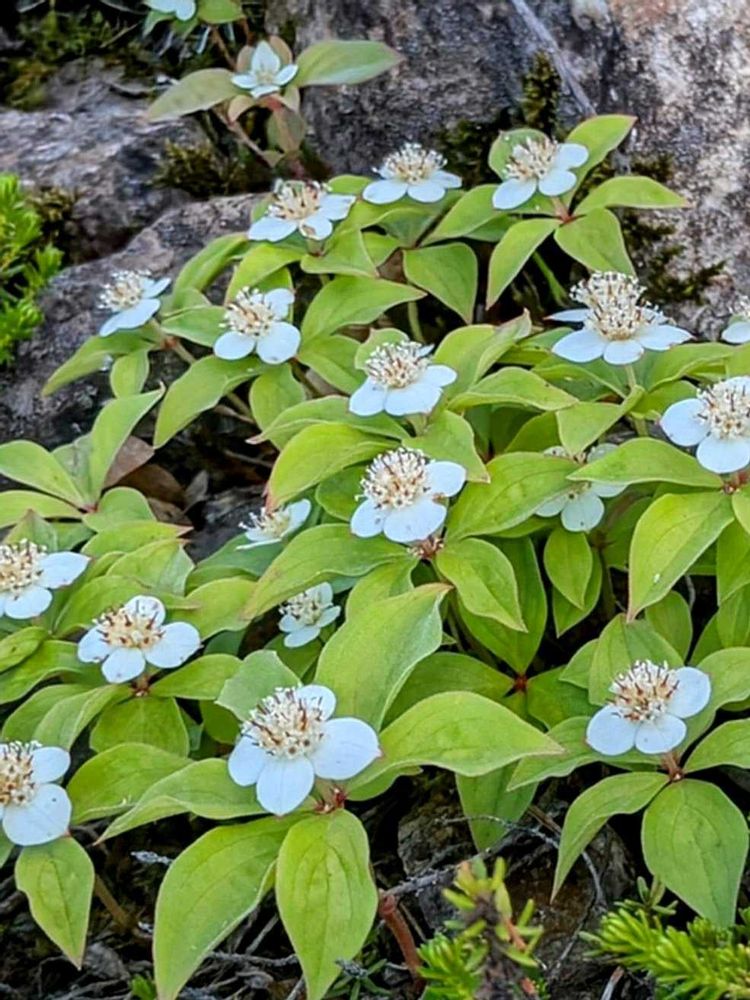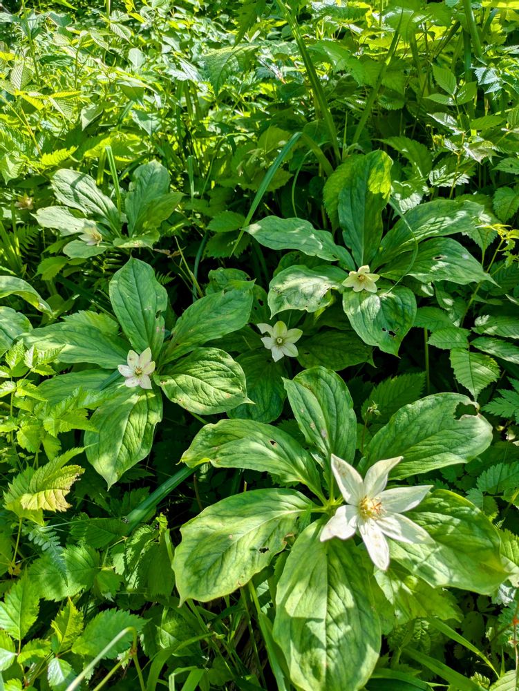 ツマトリソウに似ている白いお花ゴゼンタチバナ(2・3枚目)はミズキ科の植物でツマトリソウとよく似ていますが、葉の付き方で見分けることができ…ゴゼンタチバナは茎に6枚の葉が輪生状につくそうです❣️