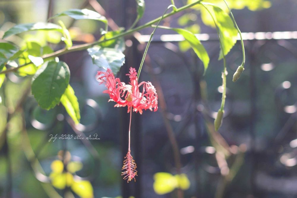これもハイビスカスなんですね、初めて見て、🏷️から色々見てきました。細いくちばし、可愛い。
