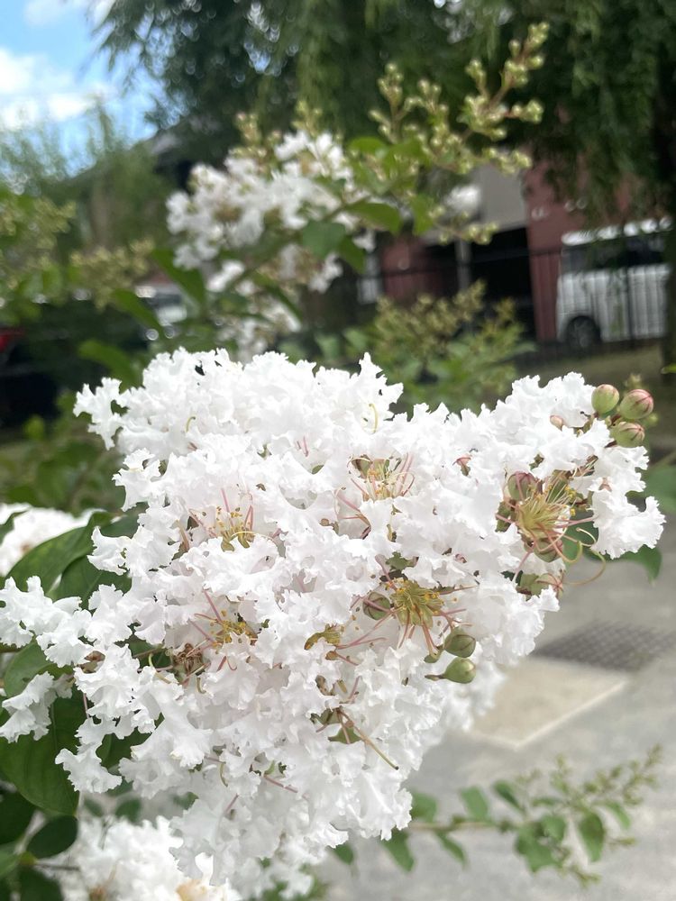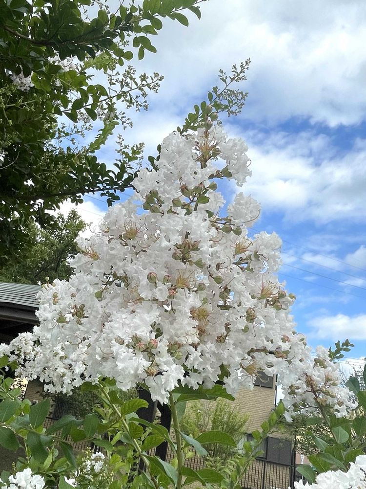 清々しい空に映える白のサルスベリさんが清楚できれいですね♡🤍✨🤍✨