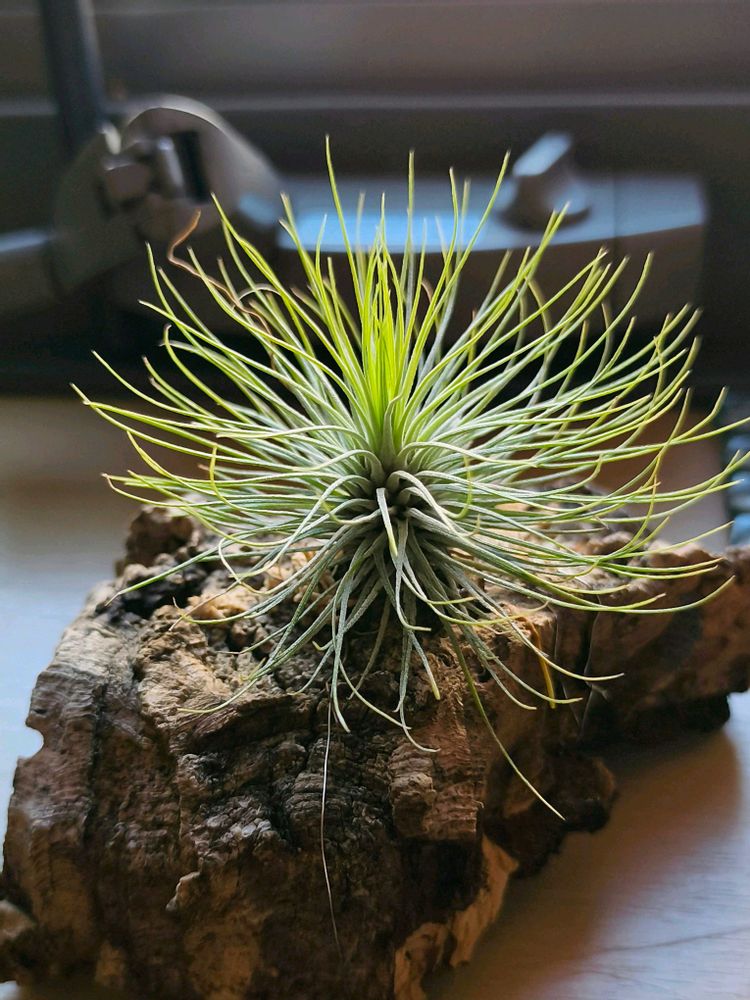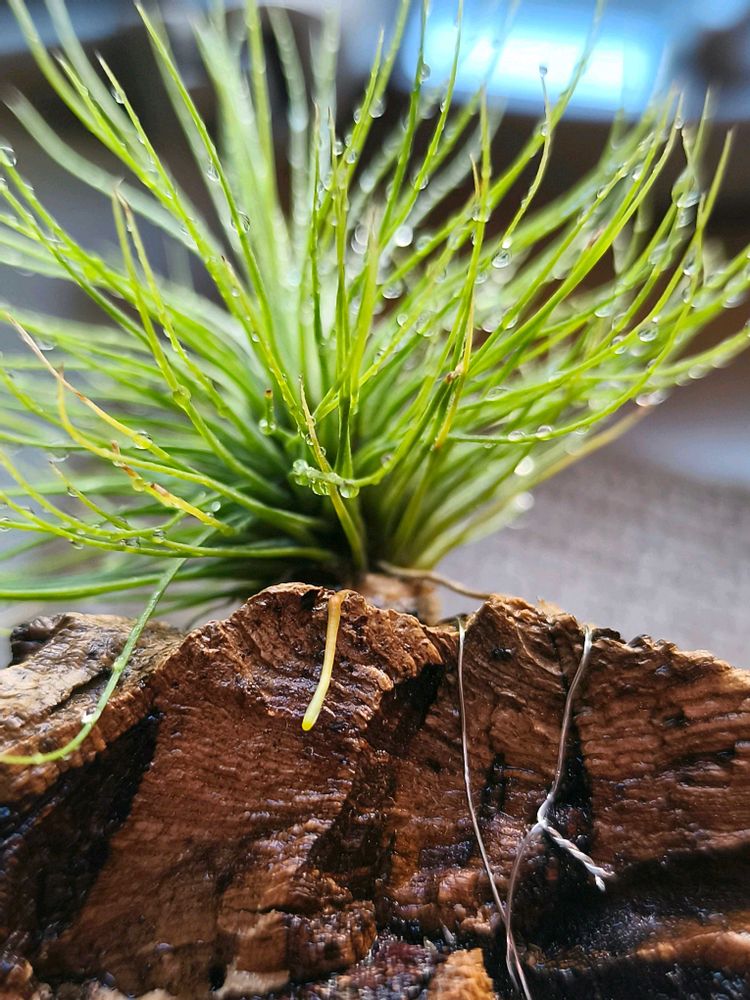 ふわっと柔らかな葉を広げ、コルクに根っこを張ろうとする力強い個体。