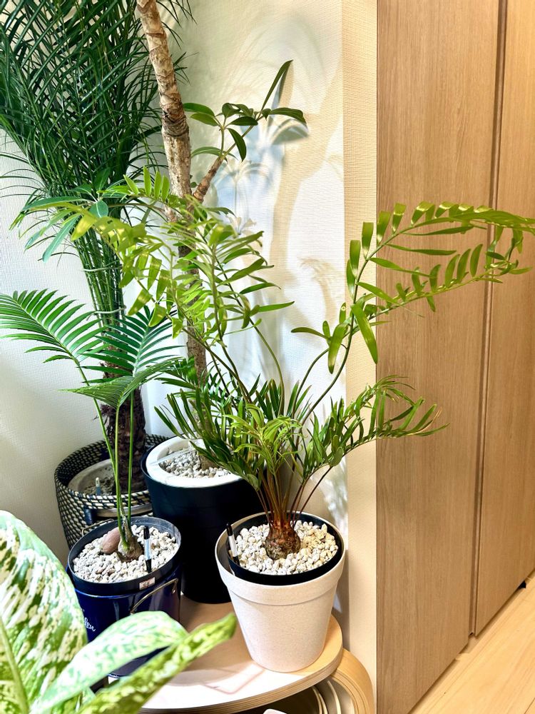 ザミア😊徒長した葉っぱを落としたザミアフルフラセアが新芽が出そうな感じなのでベランダへ出した😊フロリダーナはこんなにも徒長してしまった😭もう少ししたら剪定します😊