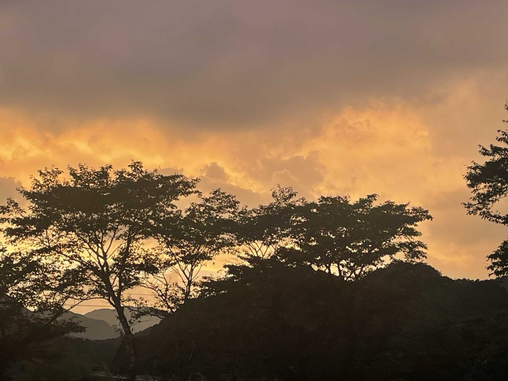 23日の夕方です。ちょうど山あいに沈んでいく太陽☀️
